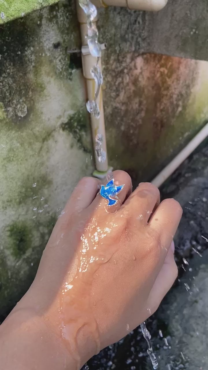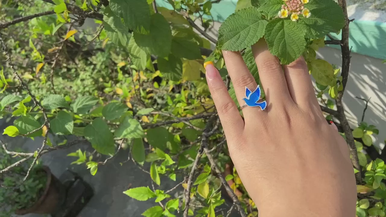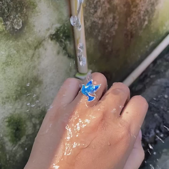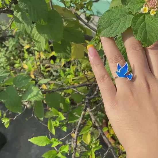 Did you know that bluebirds are often seen as symbols of joy, hope, and good fortune? Give your outfit a touch of positivity and good luck with this beautiful flying blue bird ring.