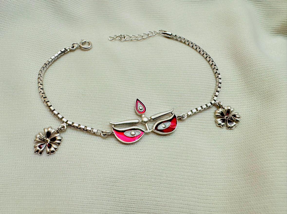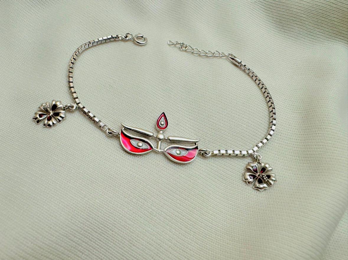 Boromaa wristlet is crafted with precise attention to detail. Inspired by the powerful Goddess Kali, this unique piece features intricate details and stunning enamel work. It not only adds style to your wardrobe, but also serves as a symbol of devotion. Elevate your fashion and spirituality with Boromaa.
