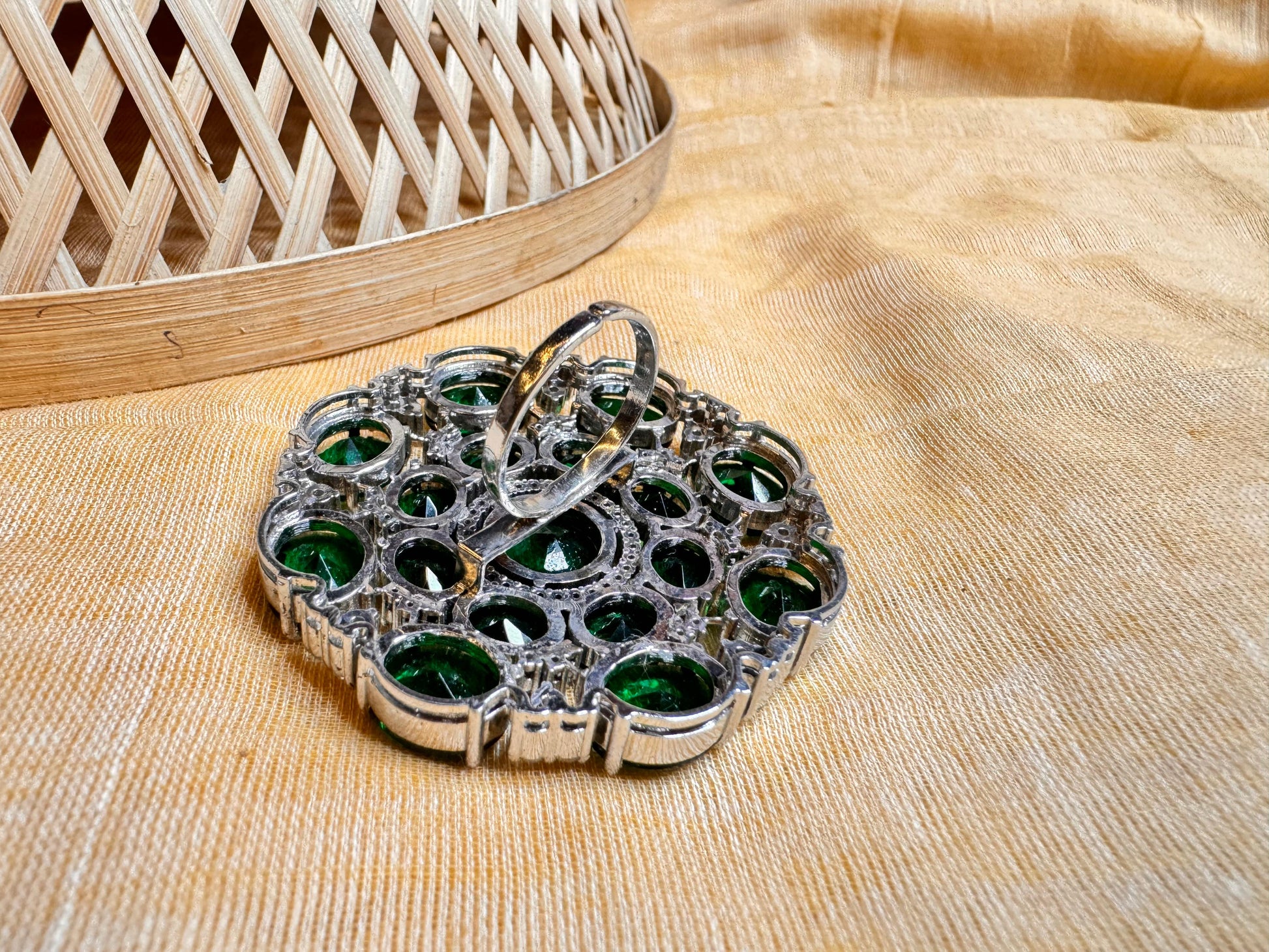 Expertly crafted using 925 handcrafted silver, this heritage ring is a must-have for any collector. Whether you're looking to add to your generational jewelry collection or seeking a timeless piece for your special day, this premium royal jumbo ring is worth every penny. With a proven history of crafting with dedication, this jumbo signita stone and glass panna ring is a true treasure.
