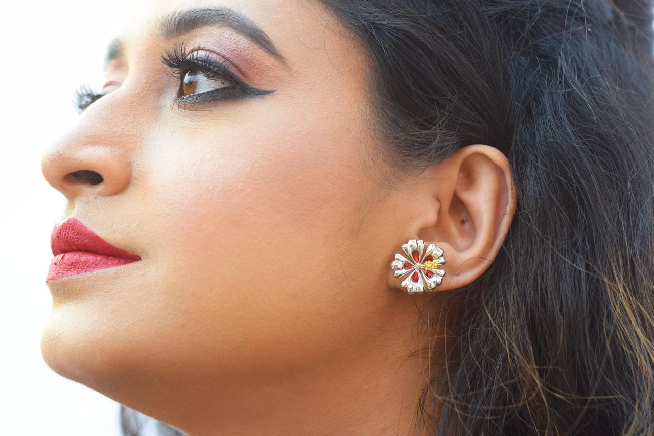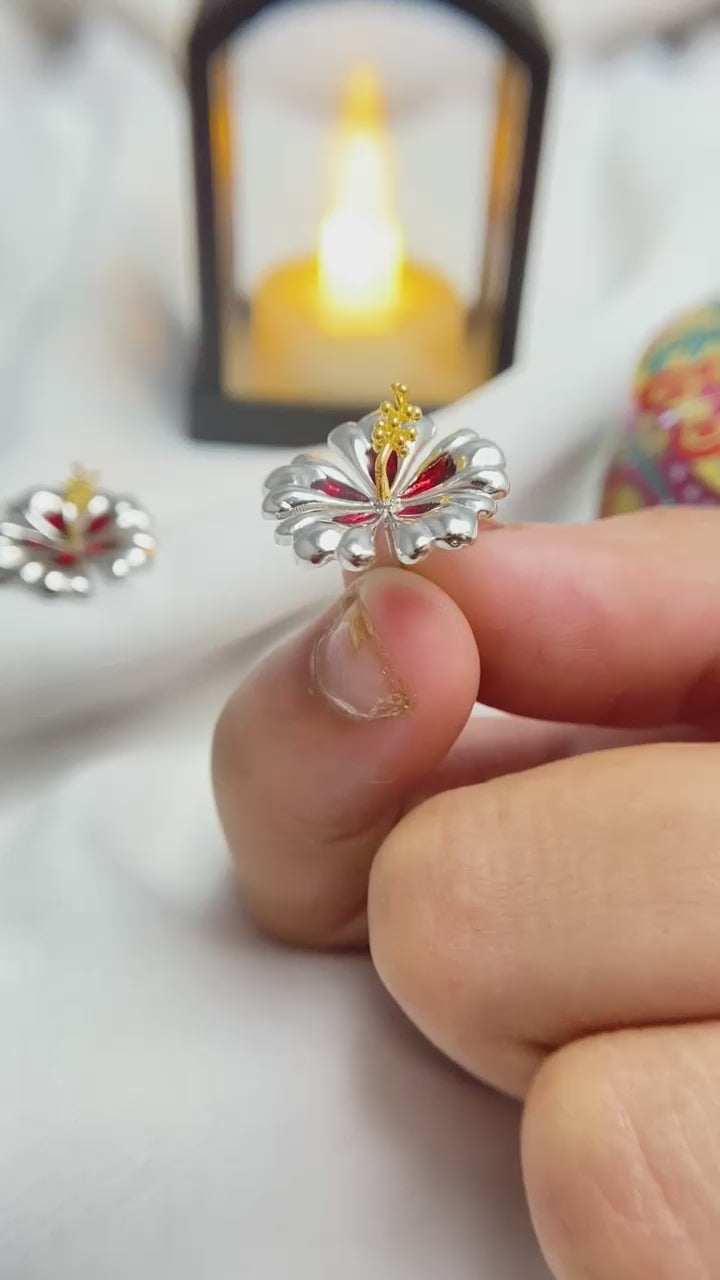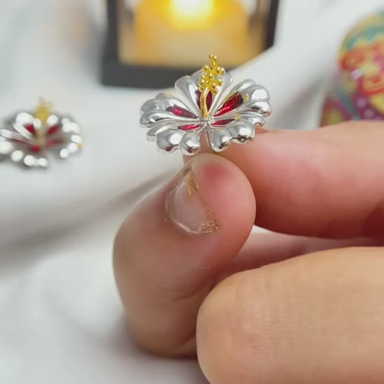 Transform your look with the intricate details showcased in each piece of Joba earring. With a focus on the red hibiscus, symbolizing the fierce Goddess Kali, every detail from the stigma and style to the petals has been carefully crafted to perfection. The dual tone and enamel provide distinct features that make this earring stand out. Elevate your style with this stunning beauty.