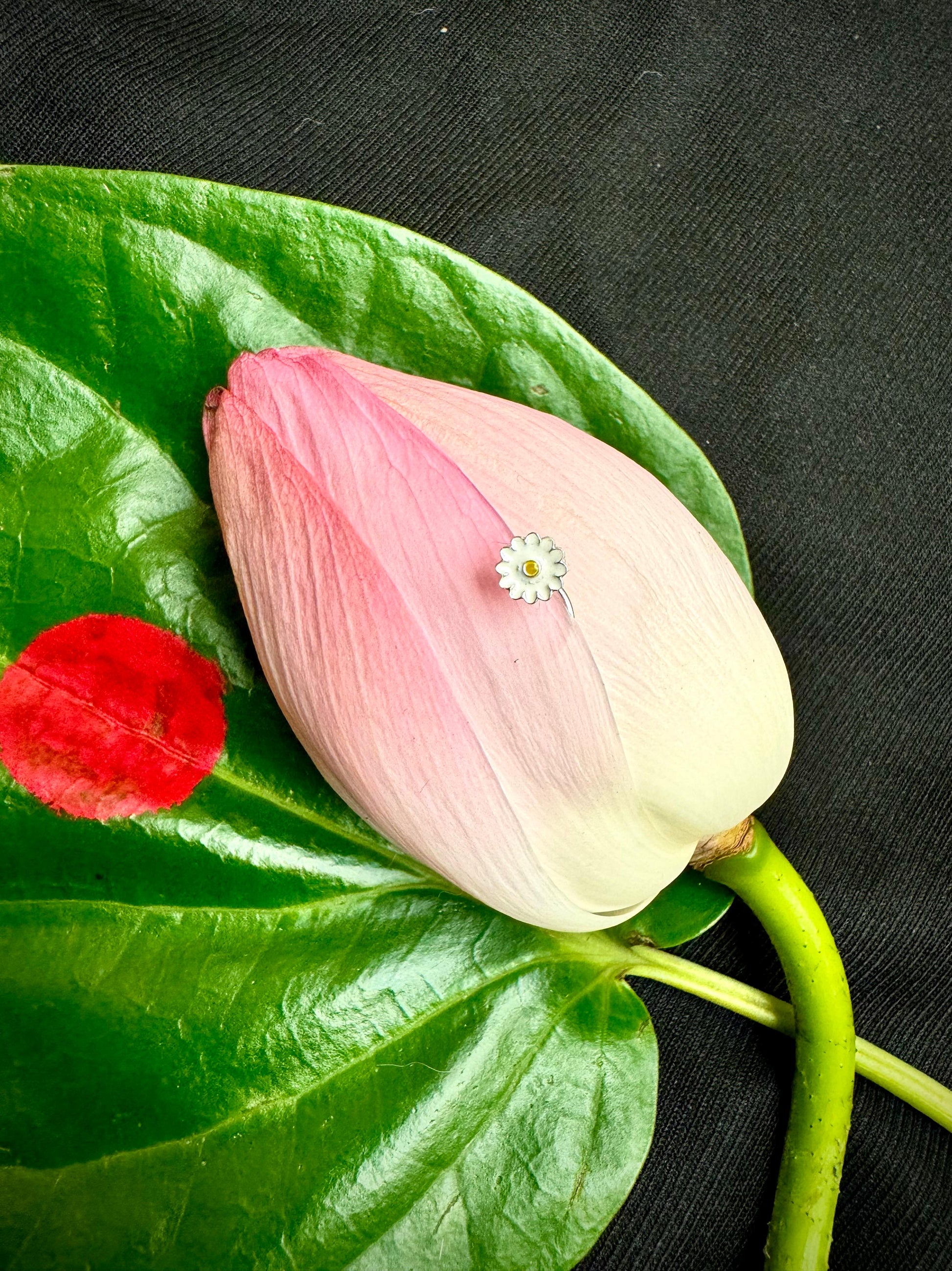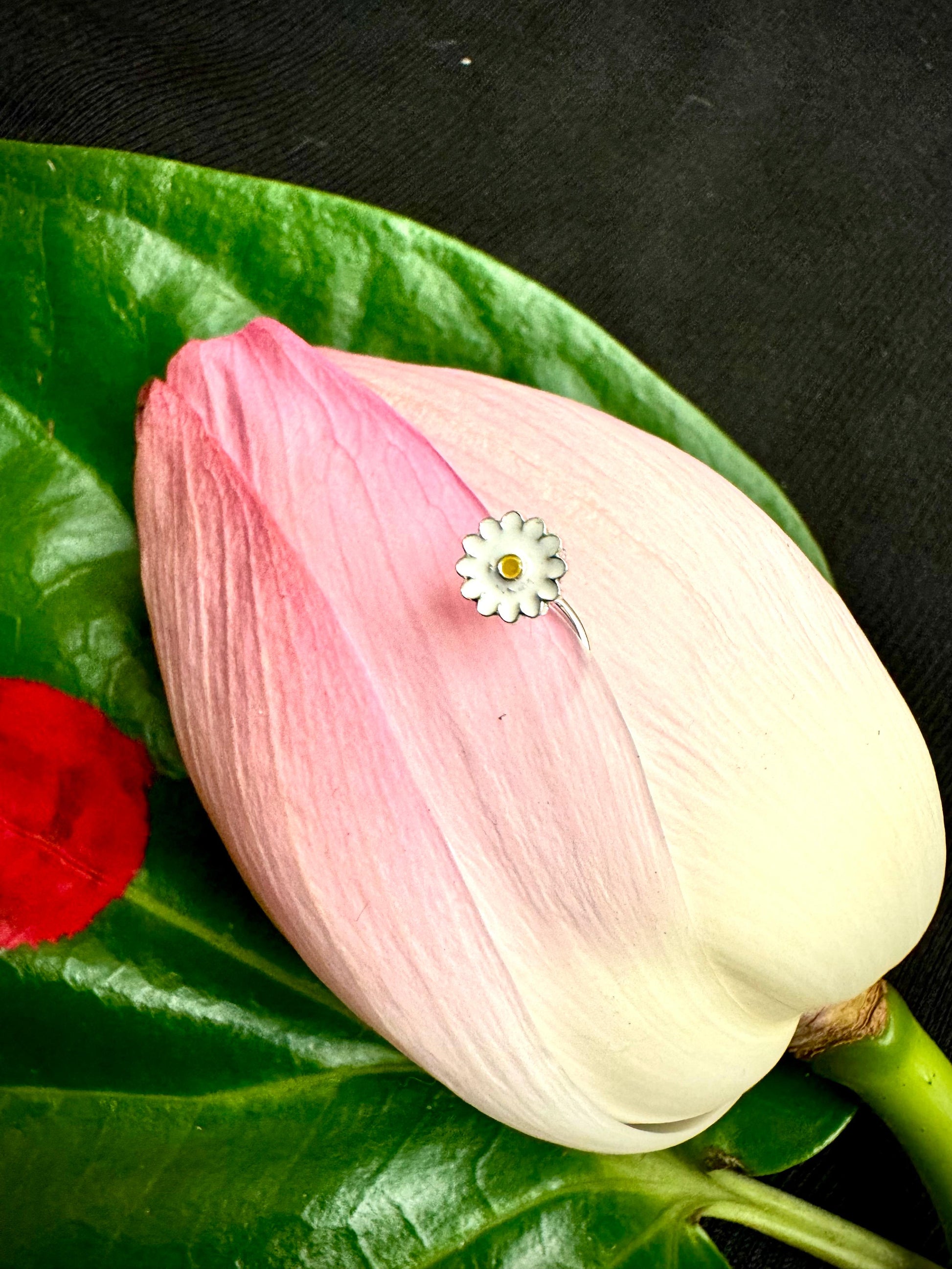 The Mallika nosepin features an elegant design with a pristine white outer finish and a striking yellow center that adds a subtle touch of color. Expertly crafted from BIS hallmarked 925 sterling silver, it ensures lasting quality and authenticity. This nosepin combines traditional craftsmanship with a refined aesthetic, making it an excellent choice for those who appreciate understated yet distinctive jewelry. Its high-quality silver construction offers durability and a comfortable fit, suitable for everyday wear or special occasions, enhancing your style with a timeless appeal.