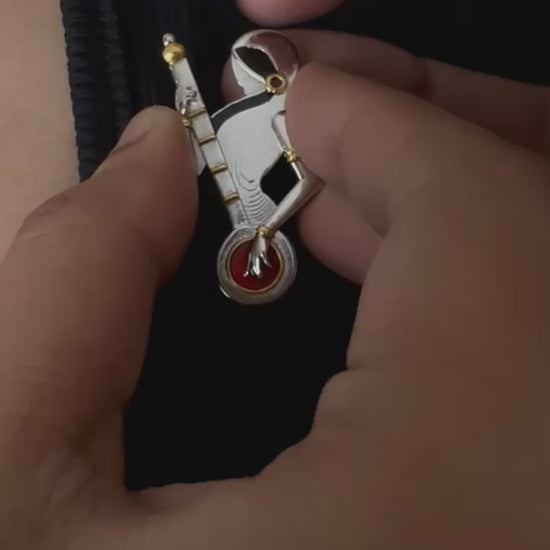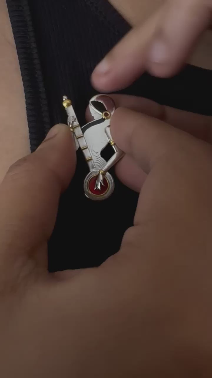 Experience tradition, art, and devotion with the Meera pendant. This elegant necklace captures the essence of the beloved poet and musician, Mira, through a stunning adaptation of her portrait and the oldest historical instrument, the Veena. Made with intricate enamel painting and a beautiful dual tone, this pendant is a timeless symbol of Mira's unwavering devotion to Lord Krishna. Let Mira's music and love radiate through this pendant and inspire you to embrace your own devotion to the divine.