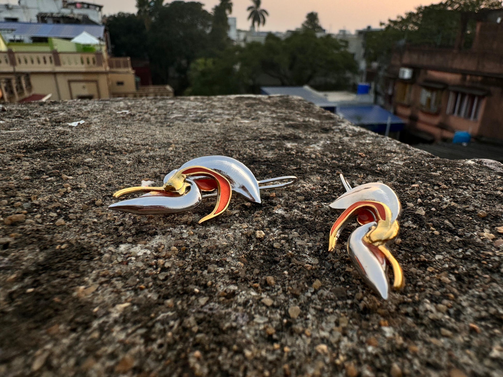 The Palash flower brooch is a symbol of spring and the celebration of Holi in Bengal, with its fiery hues reminiscent of the colors of the festival. Its significance in Bengali culture is reflected in references in poems and the use of the flower in rural garlands. This metal form of the flower is the result of weeks of careful design, making it a unique and meaningful addition to any outfit.