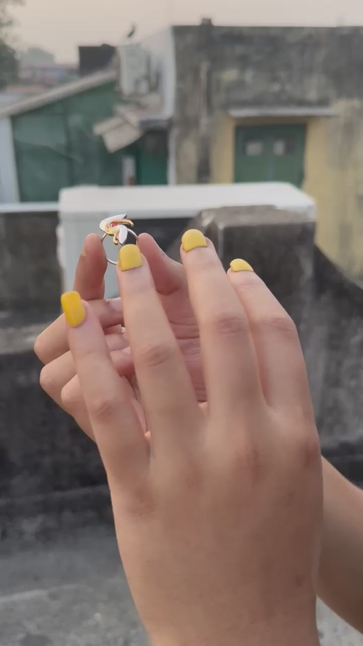 The Palash flower brooch is a symbol of spring and the celebration of Holi in Bengal, with its fiery hues reminiscent of the colors of the festival. Its significance in Bengali culture is reflected in references in poems and the use of the flower in rural garlands. This metal form of the flower is the result of weeks of careful design, making it a unique and meaningful addition to any outfit.