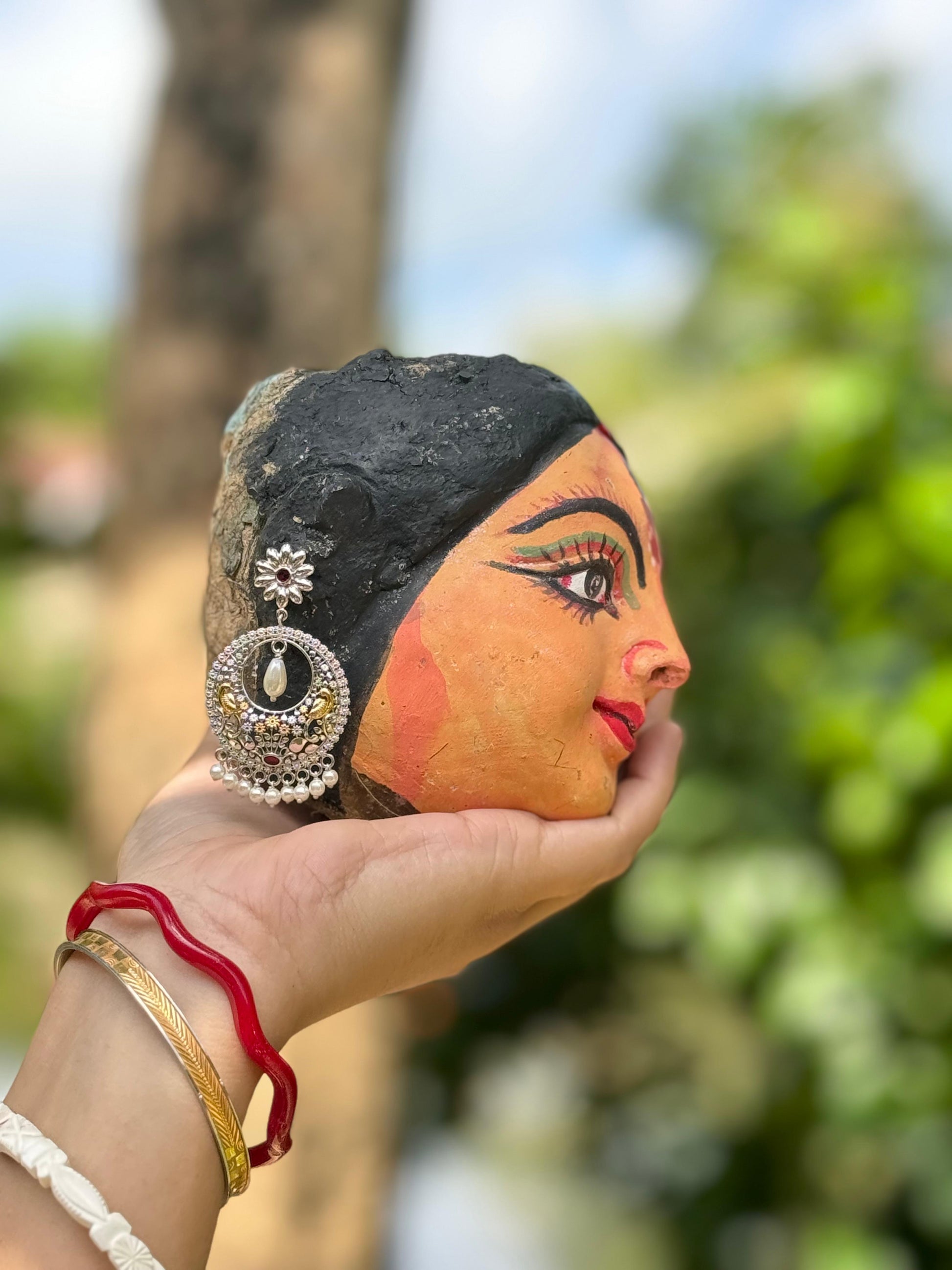The Peacock jal work chandbali earring is expertly crafted with intricate designs and adorned with tiny pearls, making it a perfect fusion of traditional and contemporary styles. This elegant combination showcases the rich cultural heritage while also being fashion-forward. Enhance any outfit with this stunning piece, designed for those who appreciate the perfect balance between tradition and modernity.