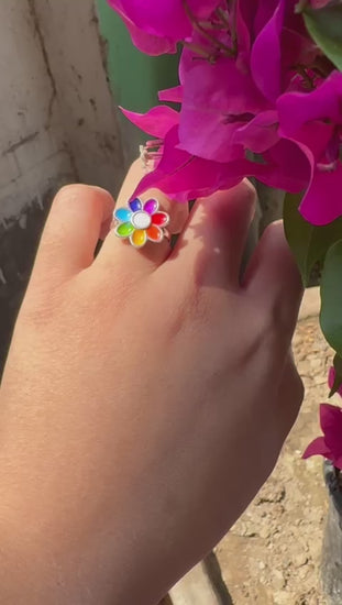 Add a touch of color to your outfit with these Rainbow ring. Featuring a burst of vibrant colors on the metal, these ring are sure to make a statement and add a touch of fun to your wardrobe. Perfect for any occasion, you can't go wrong with these colorful and stylish ring.
