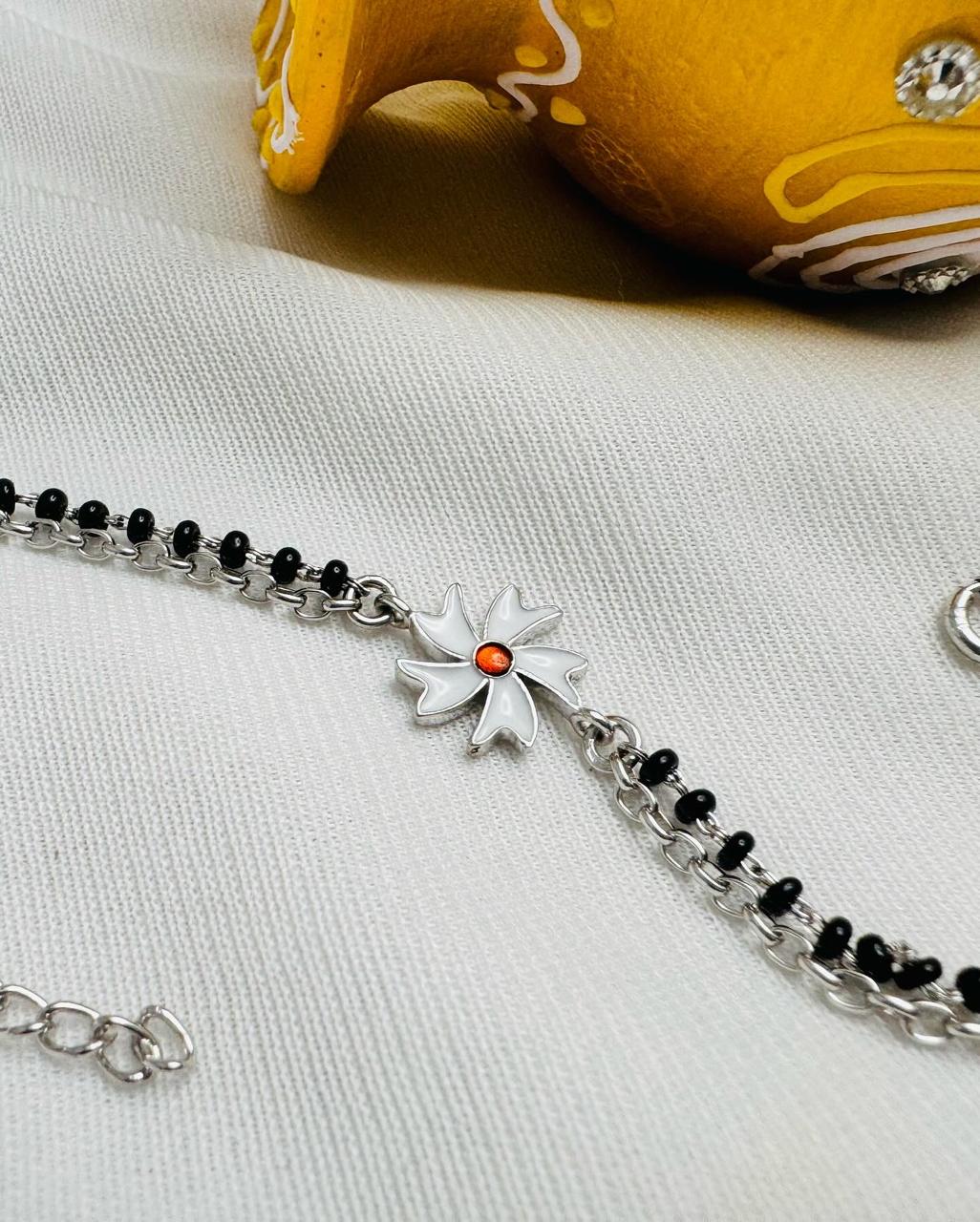 The Shiuli wristlet is adorned with blooming white petals, the symbol of the festive season in India. This makes it a popular and well-loved accessory for any occasion, adding a touch of realism and beauty to your ensemble.